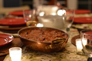 - Red Cambria Plates from Pottery Barn, votives