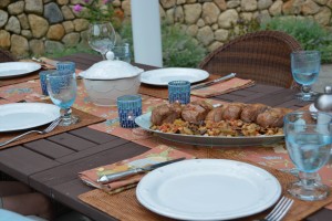 We were lucky enough to find some lamb chops whilst in the Cape, which is no small feat. They’re not much into lamb in the US, we find. Inspired by the recipe for Lamb Chops with Eggplant and Indian Spices from Fine Cooking’s August/September 2011 edition, Adam and I donned our aprons and dug in. We were attracted to the the Indian spice aspect of the recipe, particularly the eggplant vegetable medley.