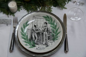 The next challenge was styling the plates. They’re green and black, as you can see. And it’s a distinct shade of green – hard to match exactly, but would be good to contrast with other colours, or incorporate with a plaid. Maybe next time. For this go round, I elected to the table arrangement in shades of green so as not to detract from the plates.