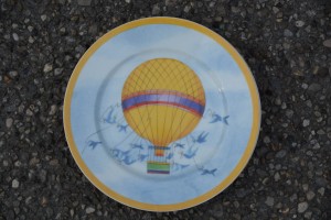 This series of plates is from Williams Sonoma, and is oddly called “Montgolfiere”. Intrigued, I did some research and discovered it is named after two brothers, Joseph-Michel and Jacques-Etienne Montgolfier, inventors of the Montgolfière-style hot air balloon. Their first experiments lifted a balloon into the sky in 1782. They were the twelfth and fifteenth children out of sixteen, and the family were paper manufacturers. I don’t quite see the connection to ballooning, but it may have been a matter of necessity being the mother of invention. Can you imagine how exciting (and terrifying) those first experiments must have been?