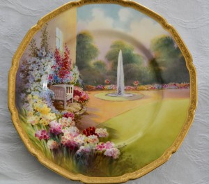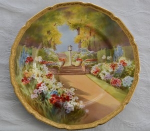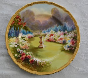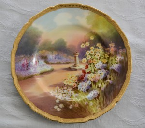 There are twelve hand painted plates in total, featuring different gardens of England. The “blank”, as the plain plates are called before they’re painted, are by Royal Doulton and have a gilded edge.