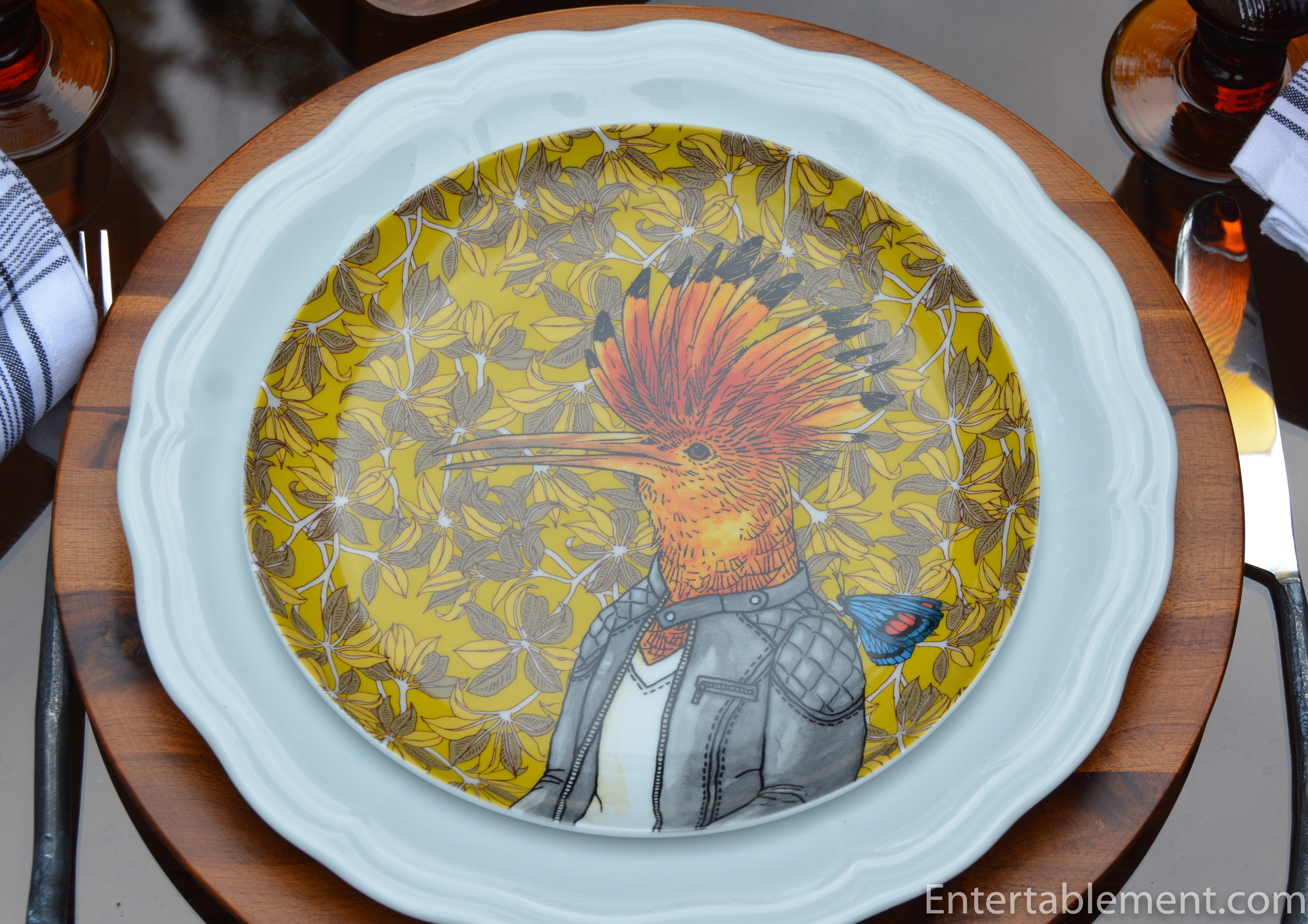 Aren’t the plates stunning? They make me smile whenever I look at them. And very reasonably priced at $10 each. I got them on sale, to add to the fun 🙂