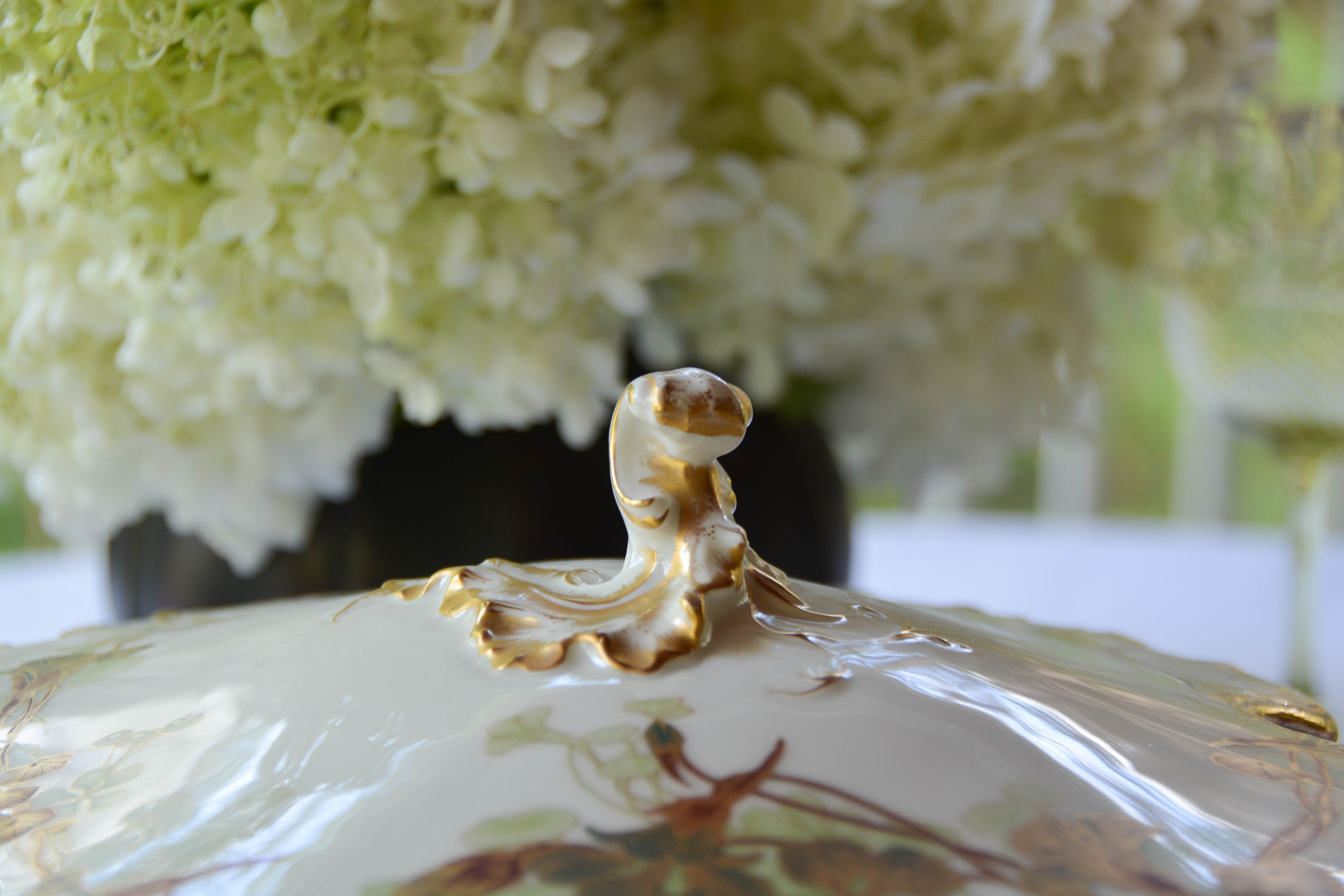 - The decor on the opposite side of the tureen