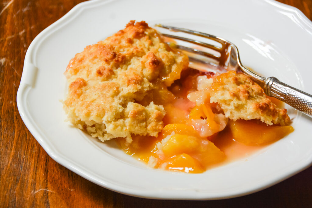 - Using a pastry cutter, cut the cold butter to the flour mix until the mixture has very small lumps (no bigger than a pea). Add buttermilk and vanilla and fold biscuit batter together gently until just combined. Scoop the dough in dollops onto the fruit; don’t worry if all the fruit is not fully covered.