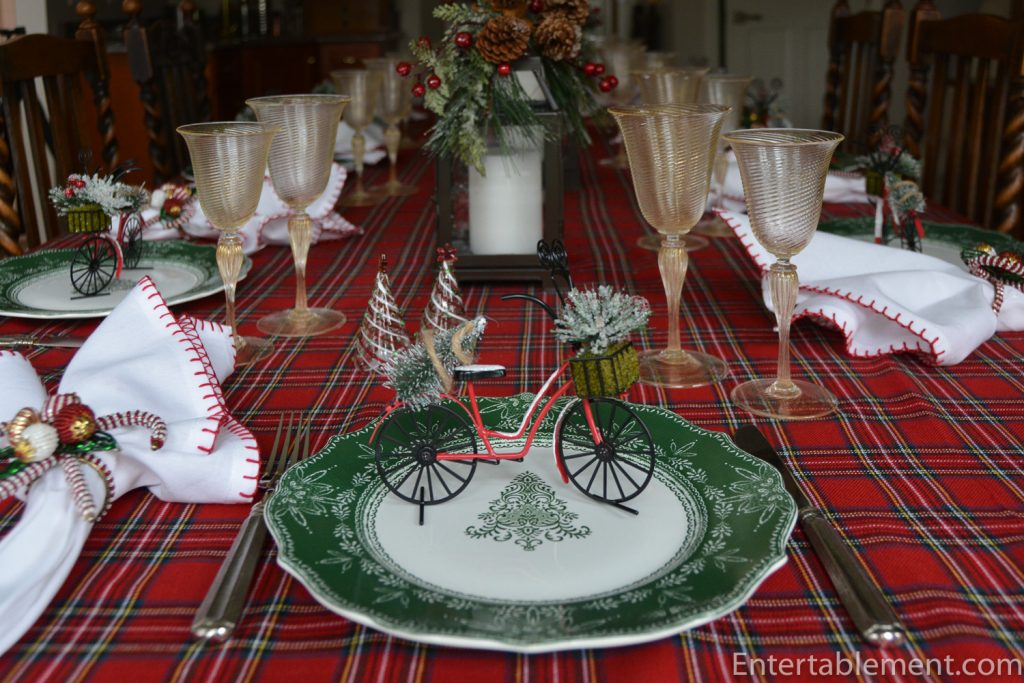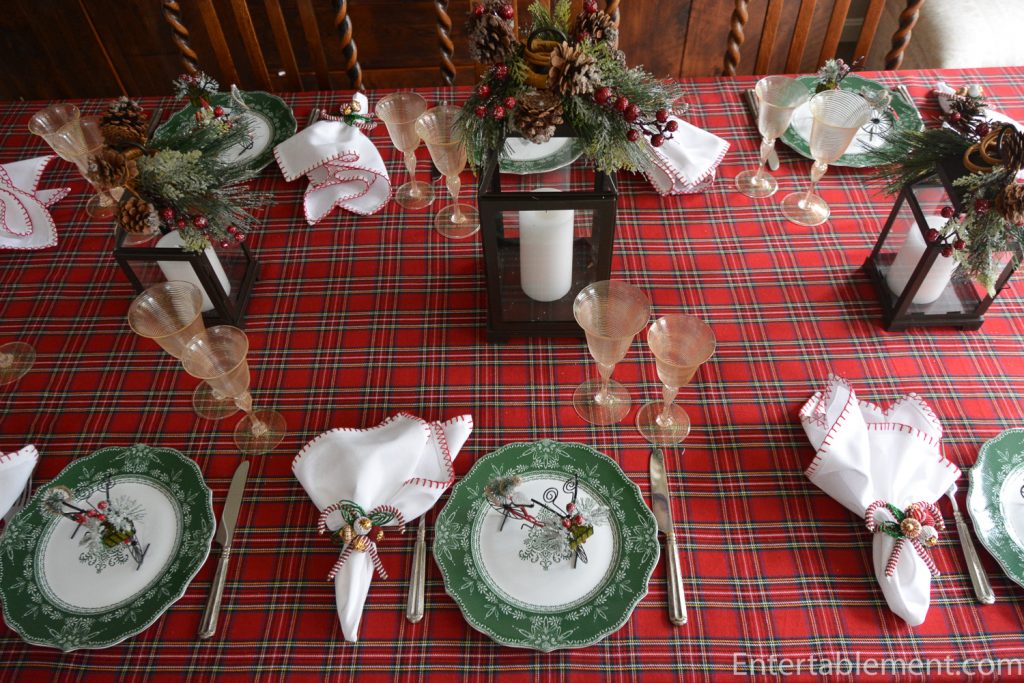 The tartan tablecloth and blanket stitched napkins, are both HomeGoods/HomeSense this year. The tablecloth is a lovely, soft fabric, similar in feel to Viyella. It was so cozy I wanted to curl up in it rather than set the table with it.