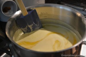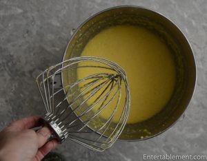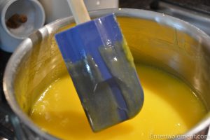- In a medium, heavy-bottomed saucepan, cook the mixture over low heat until it looks smooth. Next, increase the heat to medium and cook, stirring constantly, until the mixture thickens (10 minutes). Don’t let the mixture boil.