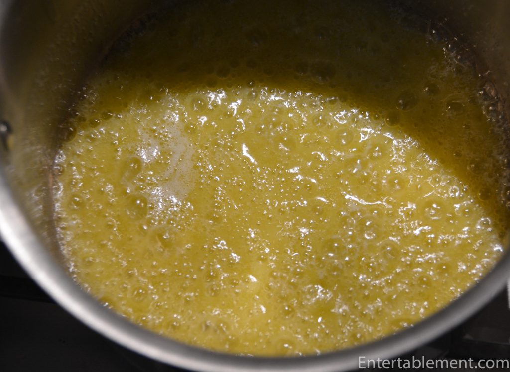 - Melt the butter in a heavy-duty 1-quart saucepan over medium heat. Cook, swirling the pan occasionally until the butter turns a nutty golden brown (about 4 minutes). Pour into a small bowl and let stand until cool but not set (about 15 minutes).