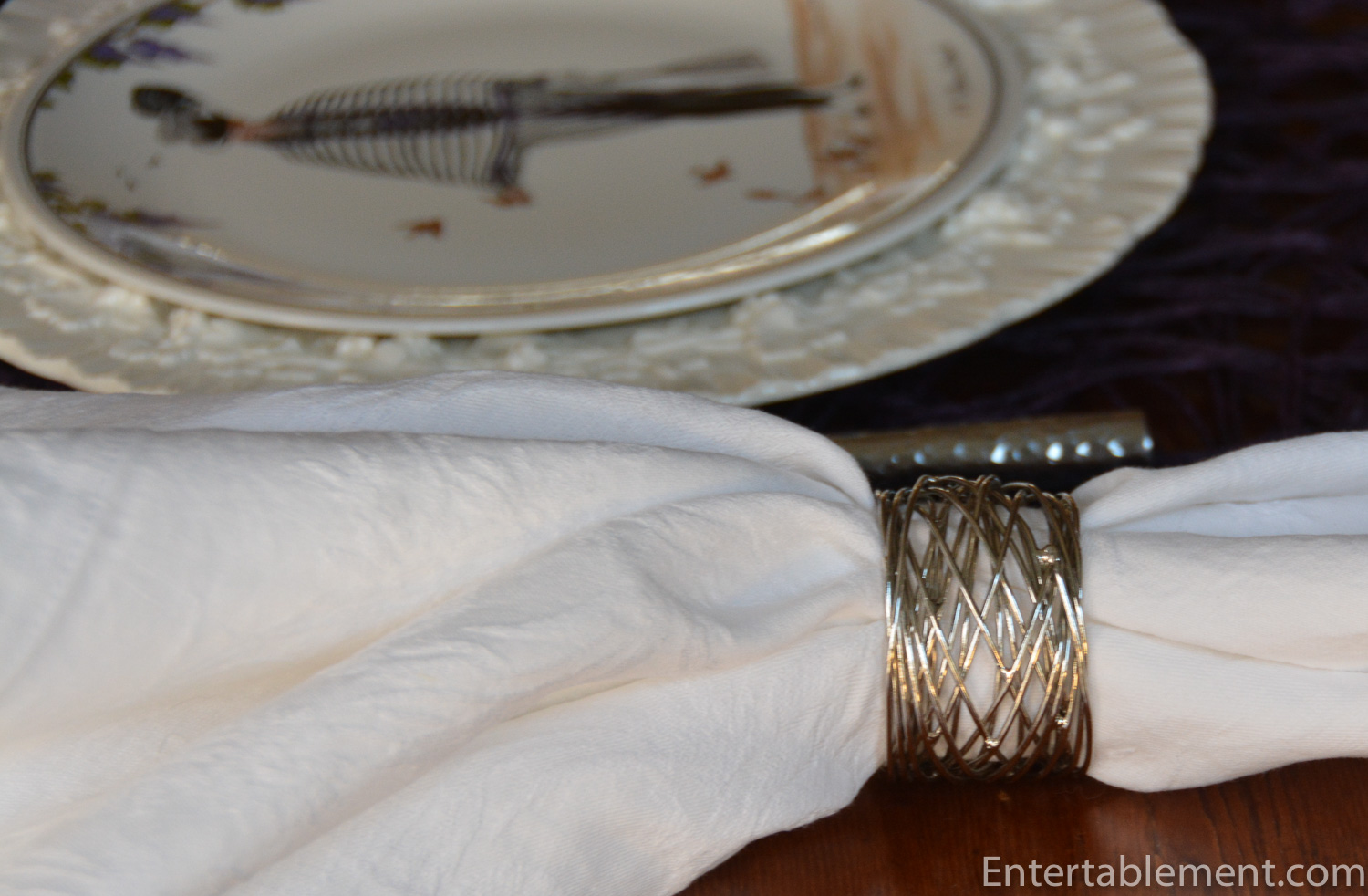 The stainless steel, twisted wire “nest” napkin rings have an uncluttered look, and also pick up on the woven texture of the placemats. (I think I got my napkin rings from Ballard Designs, but I’ve included a link to a set on Amazon.)