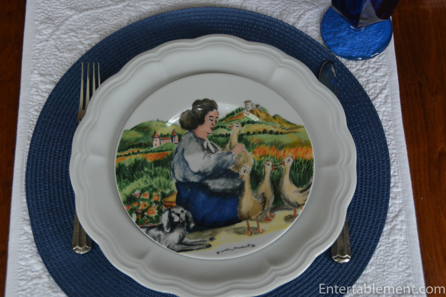 I can quite see how Guy Buffet was inspired to create these plates. This is the statue in Sarlat featuring the local canard (duck).
