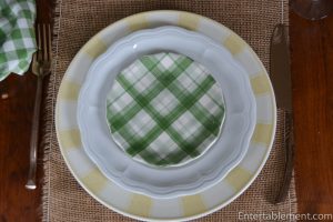 Pier 1’s new Natural Greens Plaid napkin coordinates with another plate.
