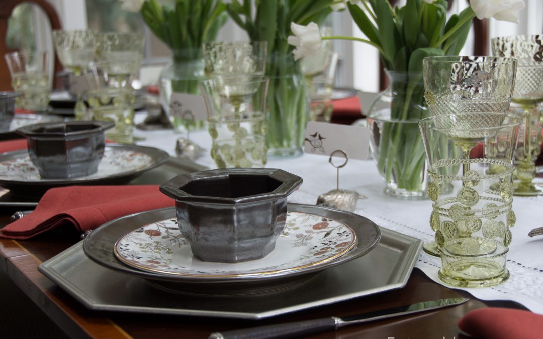 Such a pretty table! I like the use of the octagonal chargers with the octagonal ramekins, it almost looks like they were made to go together. Your green glassware is beautiful. Let’s hope that The weather continues to warm up so we can enjoy it!!