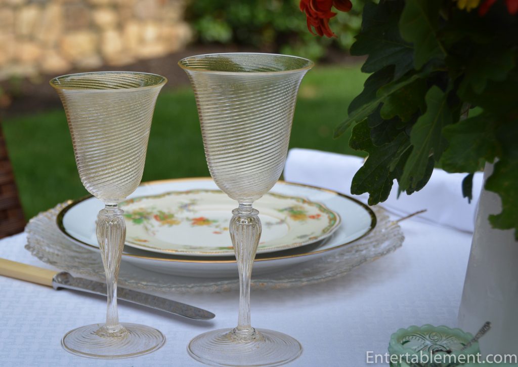 On to the supporting cast. Gold Swirl antique Venetian goblets from Elise Abrams Antiques.
