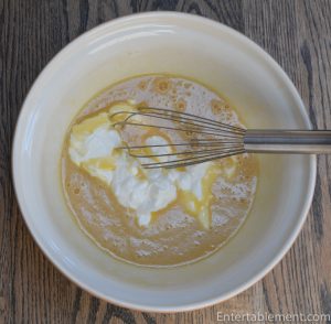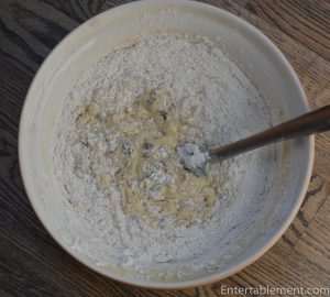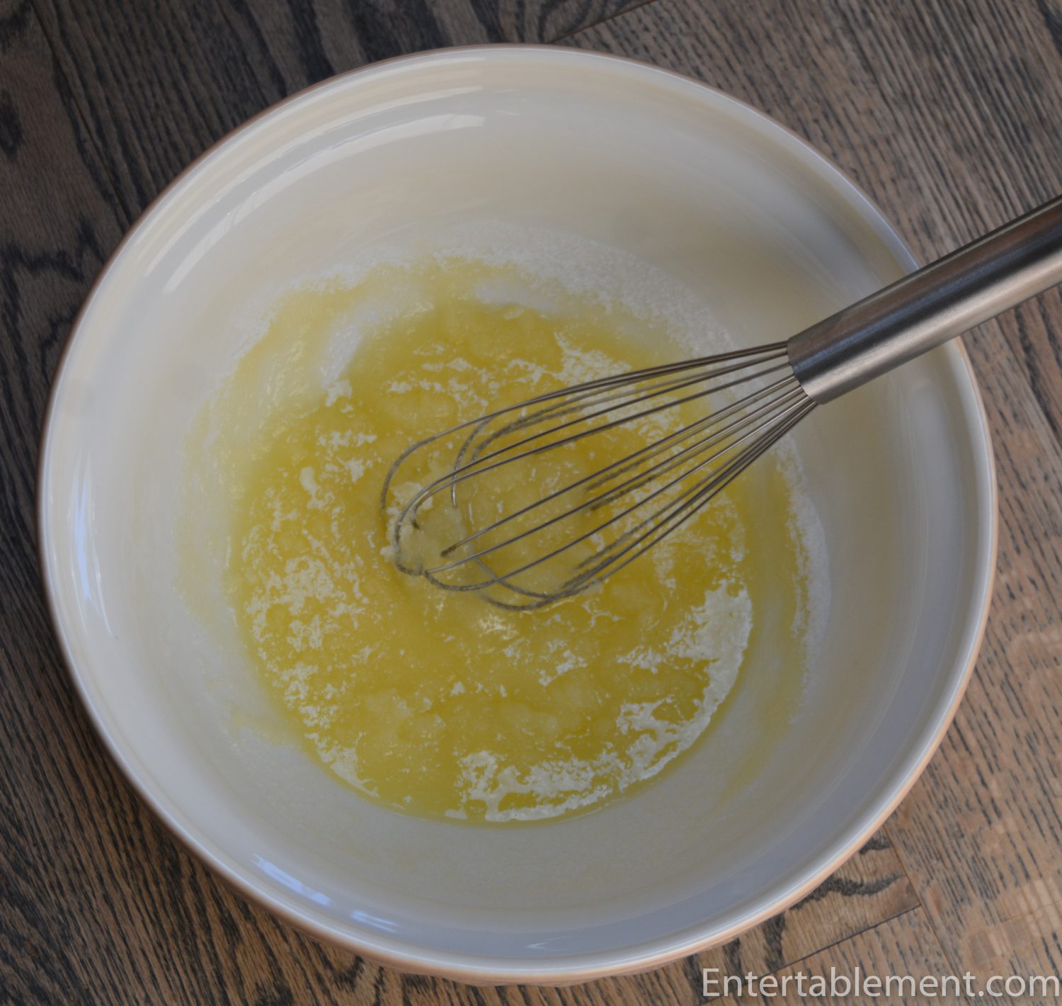 - Add the dry ingredients to the butter mixture, whisking until smooth.