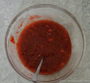 - smooth with a spoon leaving 1/2″ around the edge uncovered