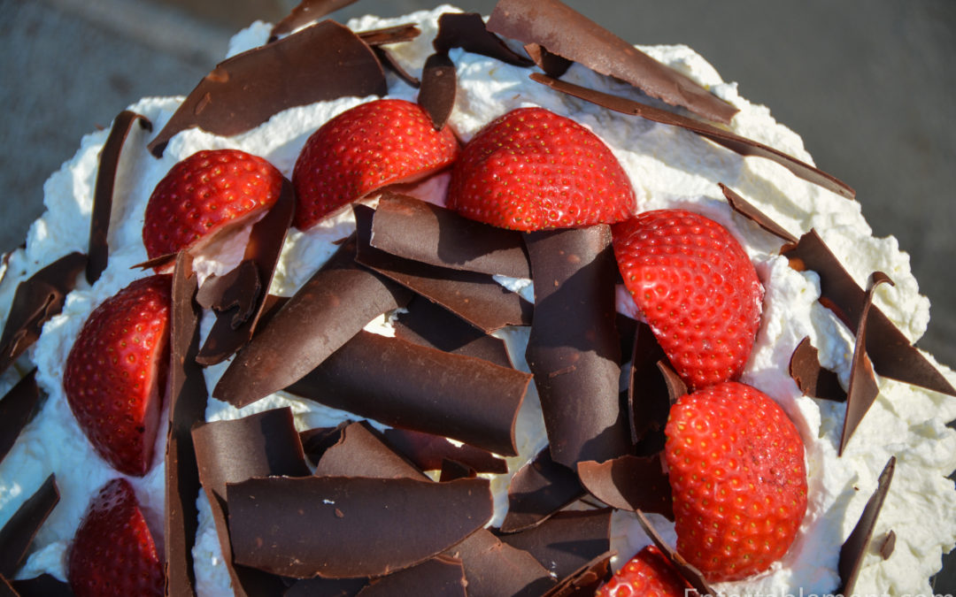 We had an unexpectedly large crowd for dinner one night recently and this was a hit with everyone from grandparents to the four-year-olds. Who doesn’t love chocolate cake with a few healthy strawberries thrown in? Oh, the mousse and whipped cream might be a bit rich, you say? Just walk a little further tomorrow.