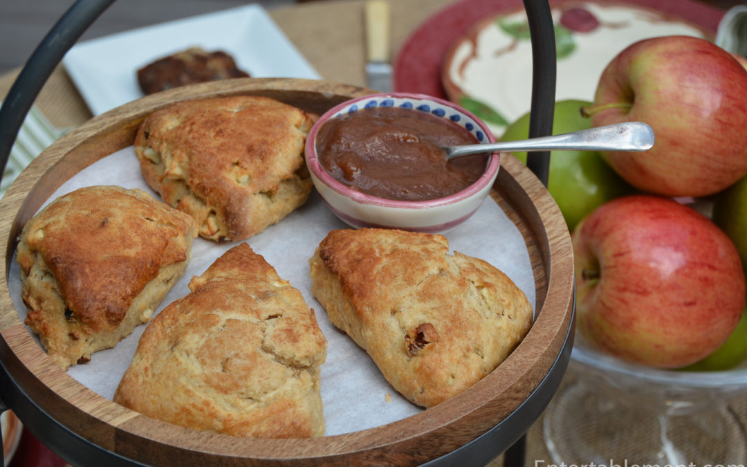 The smell of cinnamon and baking apples is pure heaven on a crisp fall day, especially when scones are in the offing. They can be enjoyed mid-afternoon, rather than having to wait for a whole pie or cake to be served “after eating a good dinner”. Sometimes you just want a little snack. NOW.