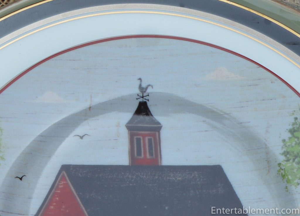 If you’re in the country you gotta have some roosters, like the one at the top of the cupola on this plate, which Replacements calls Rooster (of course).