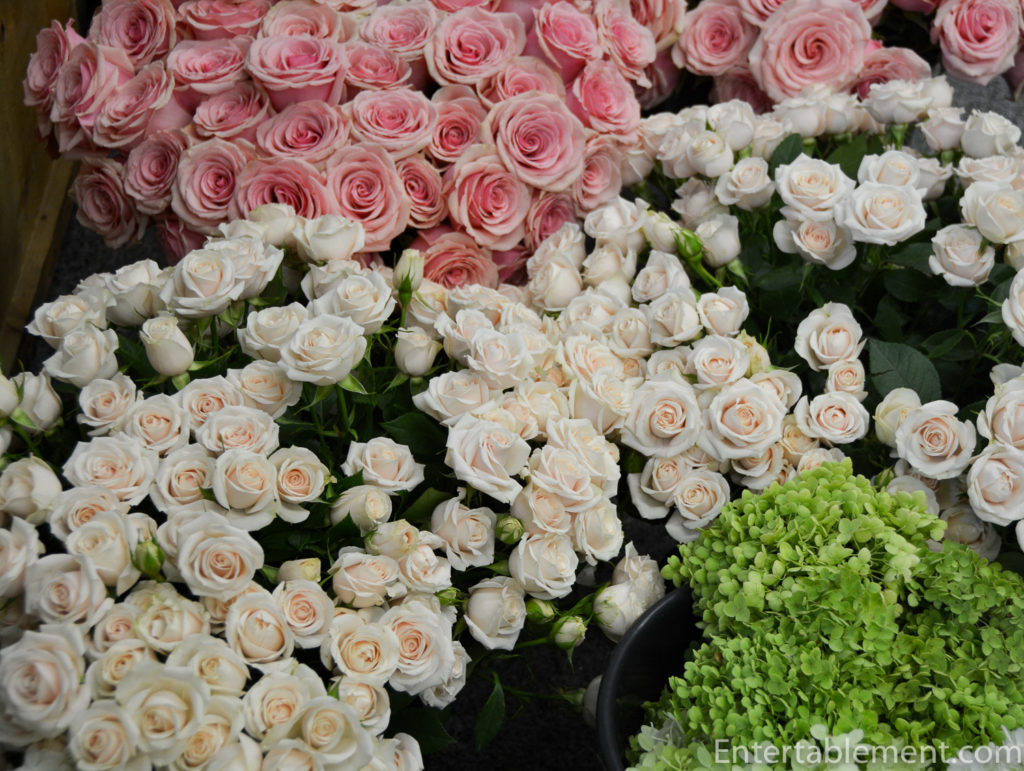 Sometime in the intervening year, I’d decided to sub-contract the bouquets. It’s one thing to do centrepieces out of which one can twitch a dropping bloom. A drooping bouquet is another matter altogether. I found a florist who was happy to collaborate, so on Thursday, I picked up ten dozen old-fashioned pink roses and sixty stems of blush branch roses from the florist. In the Mini, of course, as Glenn had driven off in our SUV that morning, blissfully unconscious of the implications of his vehicle choice. Surrounded by four buckets of flowers, I drove home in perfumed heaven. The florist had also provided me with some kind of magic potion to put in the water for the hydrangea which I harvested from our garden the following morning.
