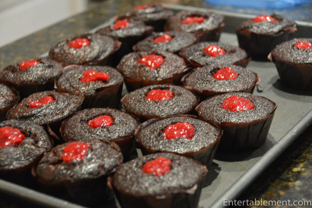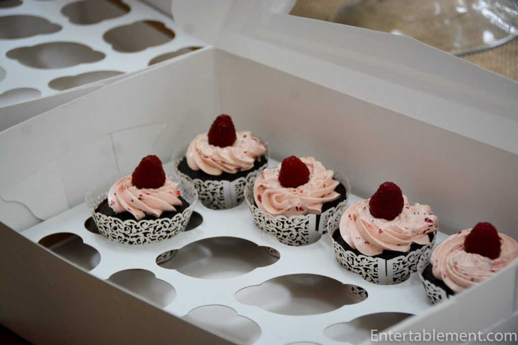 We used fresh raspberries to garnish that set of cupcakes. So now we were done three of the four batches.