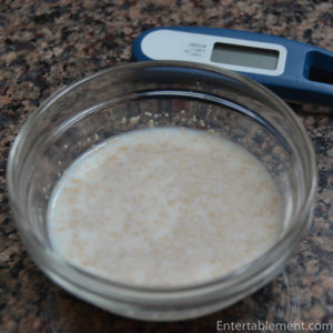 - In a medium bowl, heat 1/4 c of milk to 96ºF. Add the yeast and stir until thoroughly mixed. Put to one side until foamy (about 7 minutes). Stir in 1 cup of flour and the rest of the milk. Cover with plastic wrap and allow to rise until doubled in size (about 30 minutes).