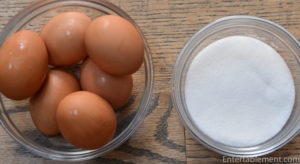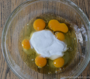 - In a separate medium bowl, whisk the eggs, sugar and vanilla until foamy.