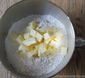 - Put the remaining 6 cups of sifted flour and the salt in the bowl of a stand mixer with the paddle attachment. Stir to combine. Add the butter and mix thoroughly.