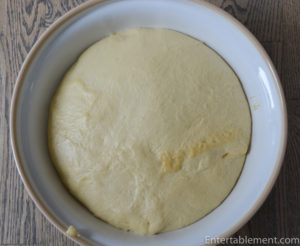 - Spray a large bowl with baker’s spray. Transfer the dough to the bowl and turn it over once to coat the top with the oil. Cover with a clean tea towel or piece of plastic wrap sprayed with the baker’s spray and leave in a warm (80ºF) place to rise for 1 1/2 hours or until doubled in size.