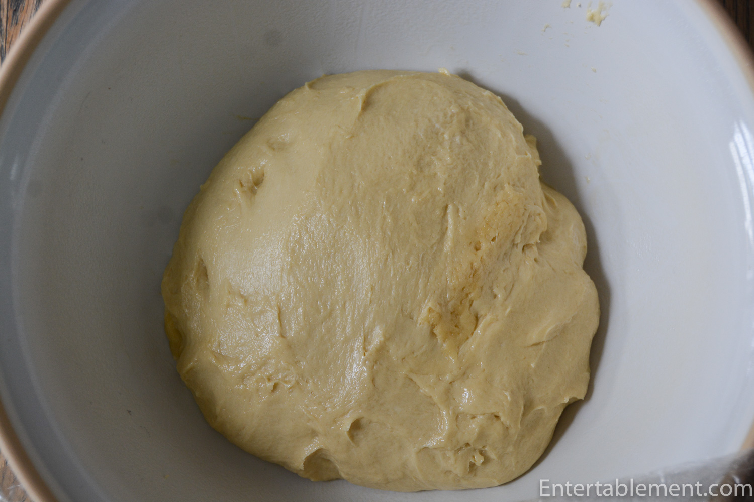 - Spray a large bowl with baker’s spray. Transfer the dough to the bowl and turn it over once to coat the top with the oil. Cover with a clean tea towel or piece of plastic wrap sprayed with the baker’s spray and leave in a warm (80ºF) place to rise for 1 1/2 hours or until doubled in size.