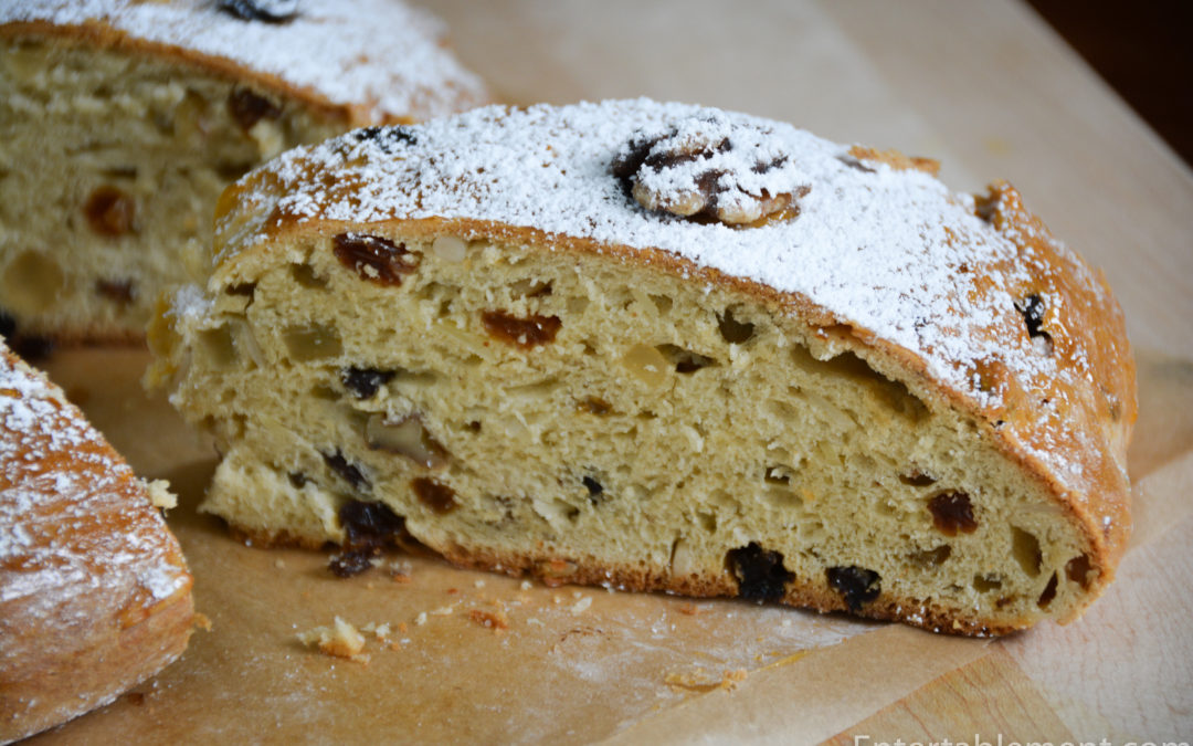 I have a terrible weakness for sweet bread. Not the sticky-sweet-cinnamon-roll kind, but the yeasty, nectarous confections the French call Viennoiserie. They’re near-pastry but not quite; they beckon as croissant, pain au chocolat, panettone and other celebration breads that often appear at Yuletide in many cultures. Our cleaning lady, Isabel, is Portuguese, and she brings us a Bolo Rei, or King’s Bread, every Christmas. The wonderful aroma from the delectably large, ring-shaped loaf, glazed with apricot jelly, adorned in candied fruit and dusted with icing sugar wafts from its crisp wrapping, tempting me to perdition. I thank Isabel profusely and as soon as her back is turned, promptly cut the loaf into about eight pieces, freeze seven of them against immediate corruption and save them for a future splurge. The eighth piece has the half-life of a gnat as I immediately devour every delicious bite. No sharing.