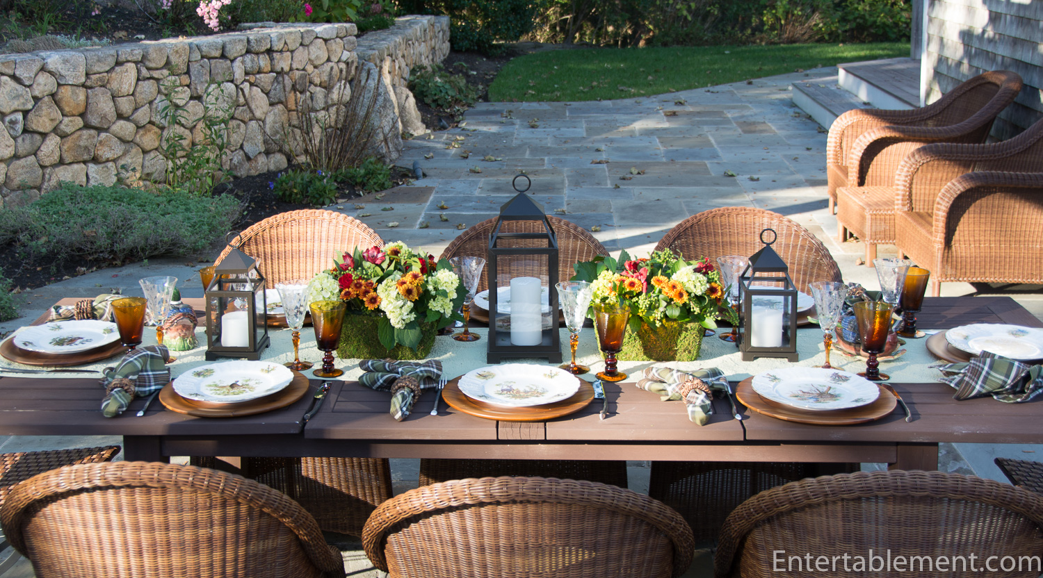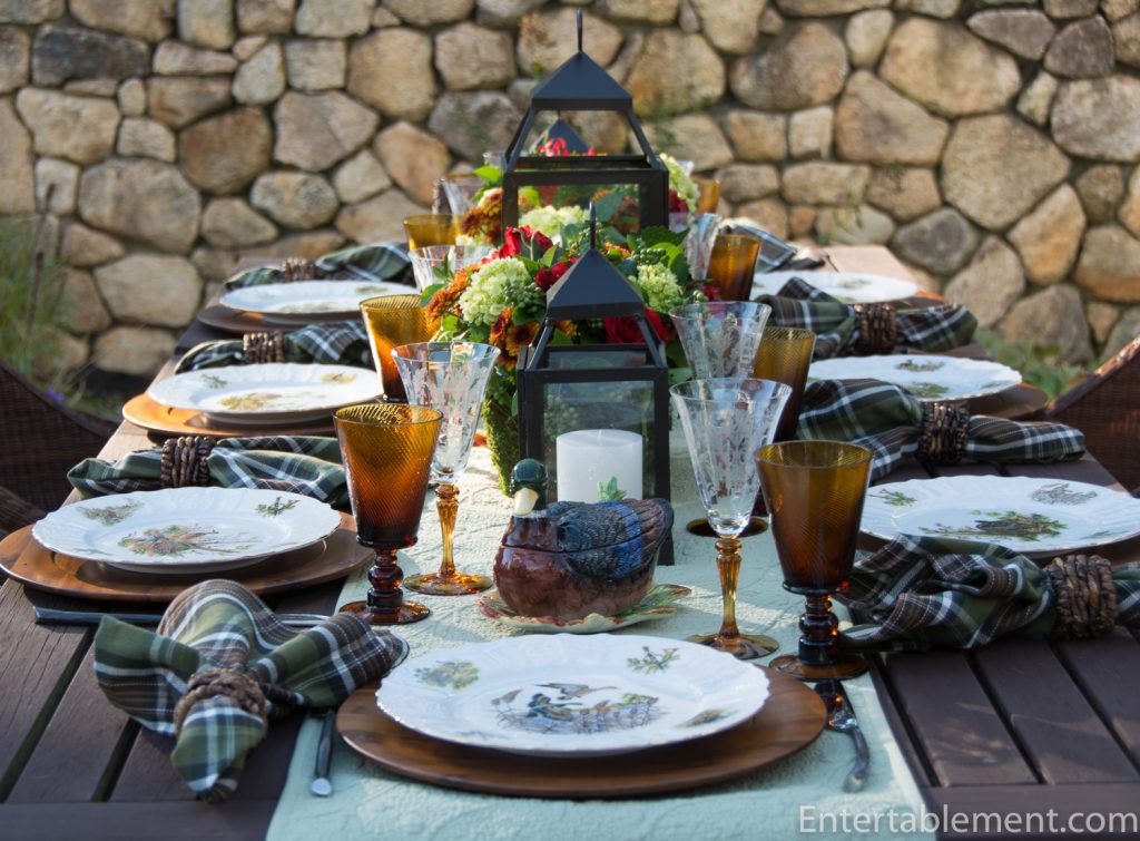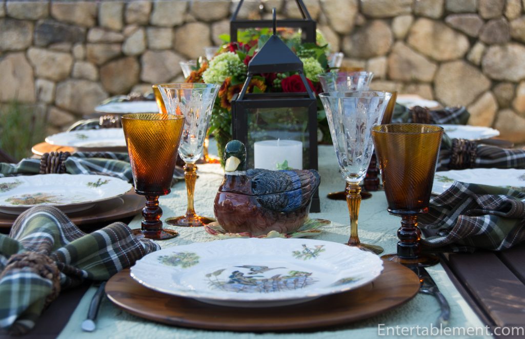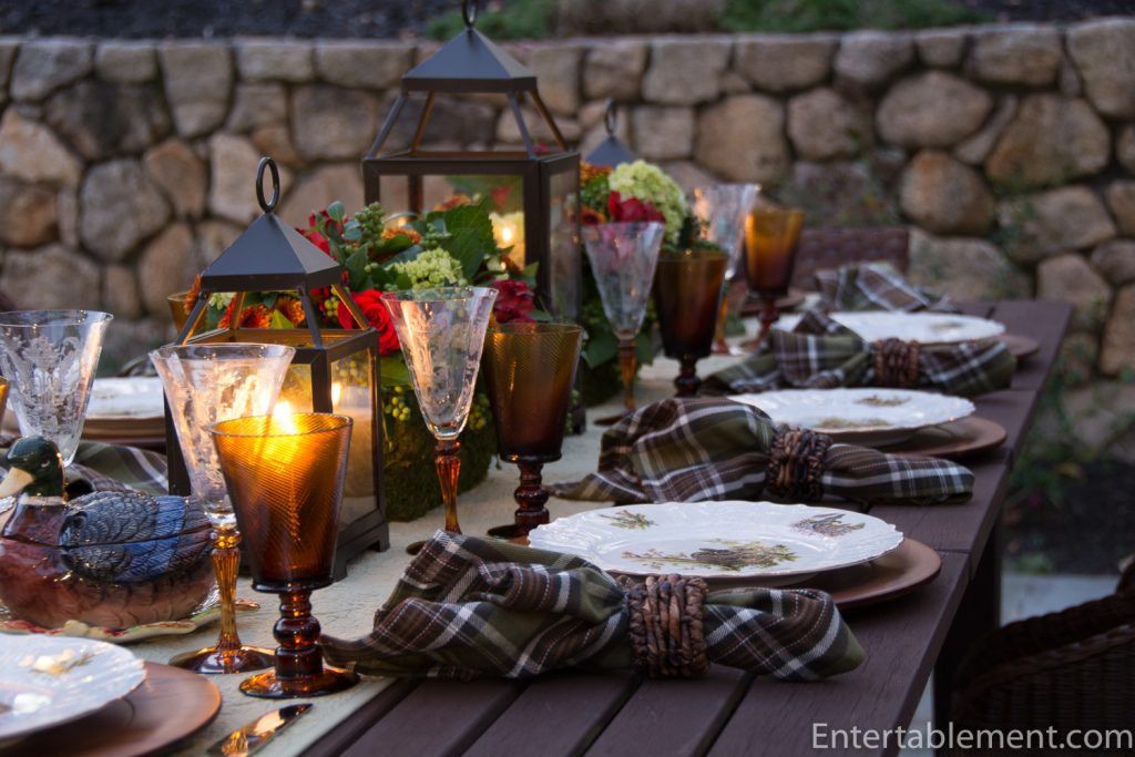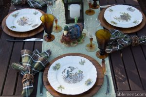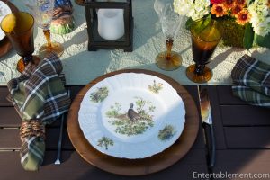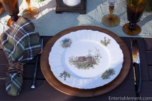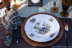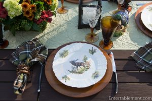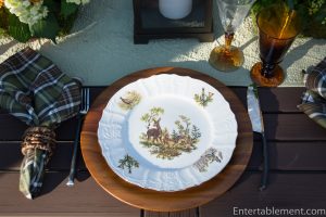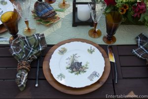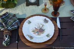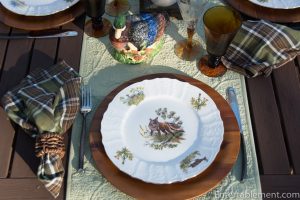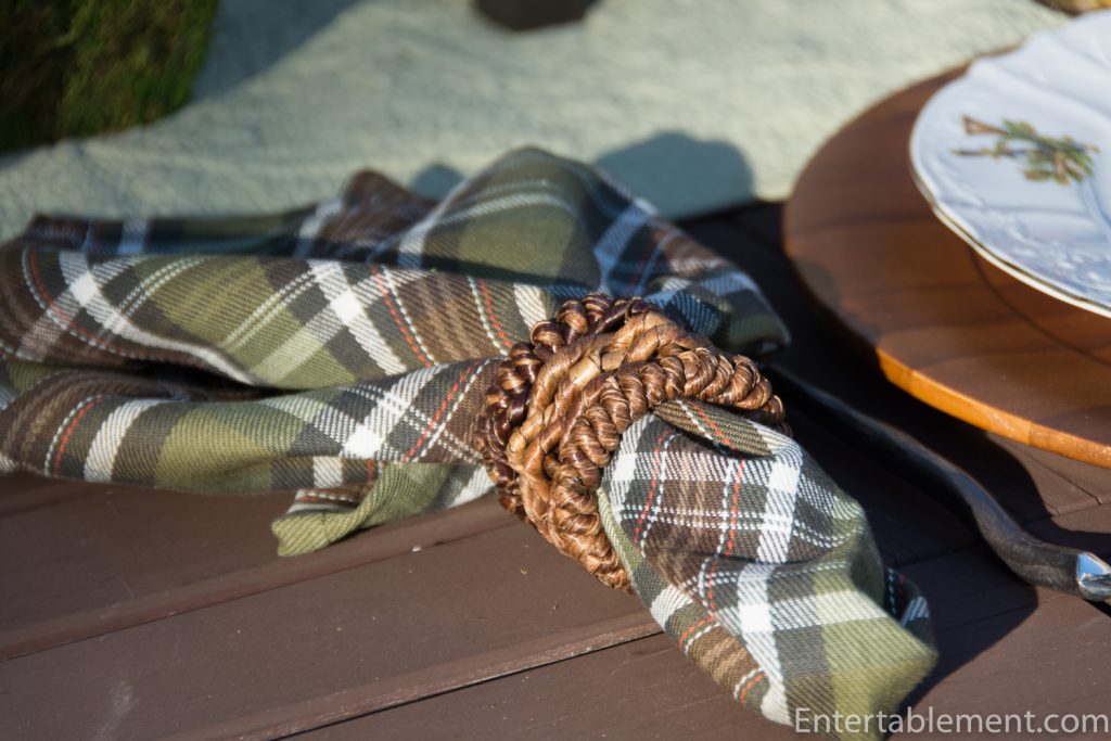 My trusty forest green plaid napkins from Pier 1 and wooden Acacia chargers from Amazon were a natural fit.