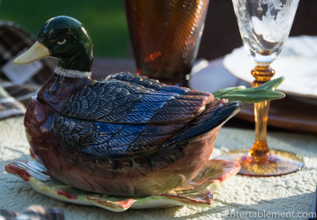 A small duck tureen from Spode glided in.