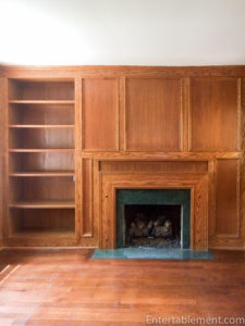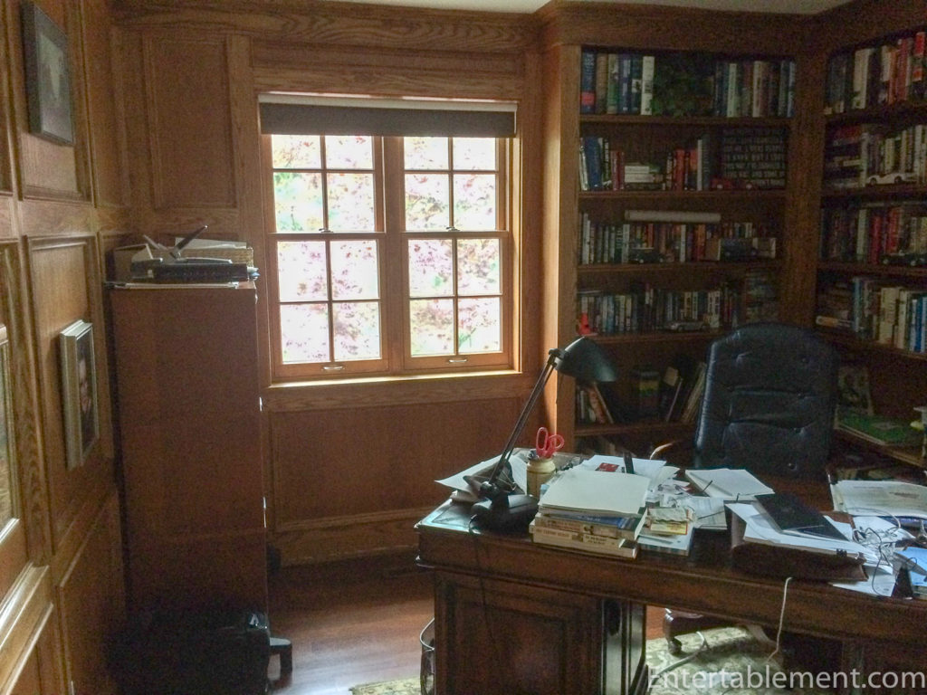 On the other side of the sweater/jeans closet were corresponding shelves in Glenn’s study, shown to the left of the fireplace.