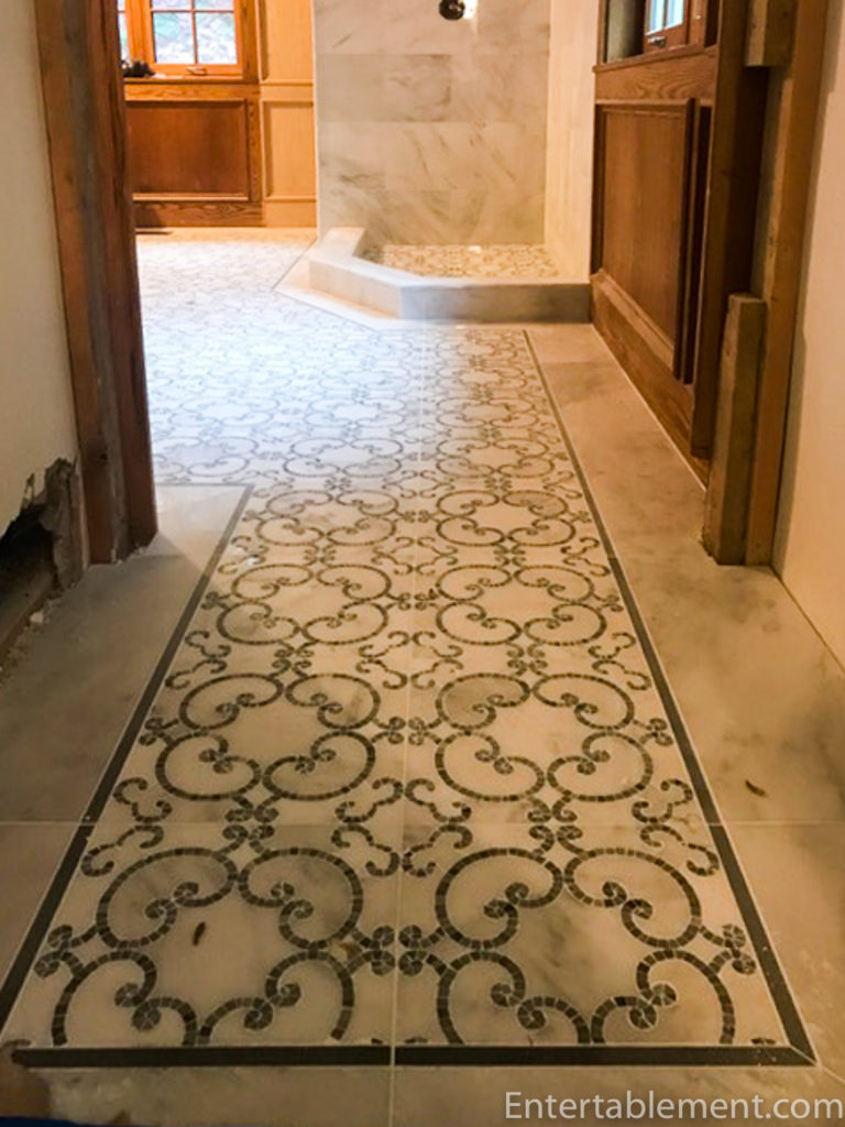 Helen, you have my sympathy, but I’ll trade you lath and plaster any time against stone. We had the incredible racket of hammer-drills for weeks to channel into the walls for electrics, and into ceilings and floors for heating coils. We require a hammer-drill to hang a picture or mirror, and it had better be the last resting place! The upstairs reno has been going one year. Beautiful ceiling beams were exposed in the tear-out, hand-hewn and mortised. They will have to be planed and stained. We’ve gone through several crews of plasterers and drywallers. Our cup runneth over. I’m just wondering where the goodness and mercy are. I love your floor tile, but where did Jesse Alexander go to live??