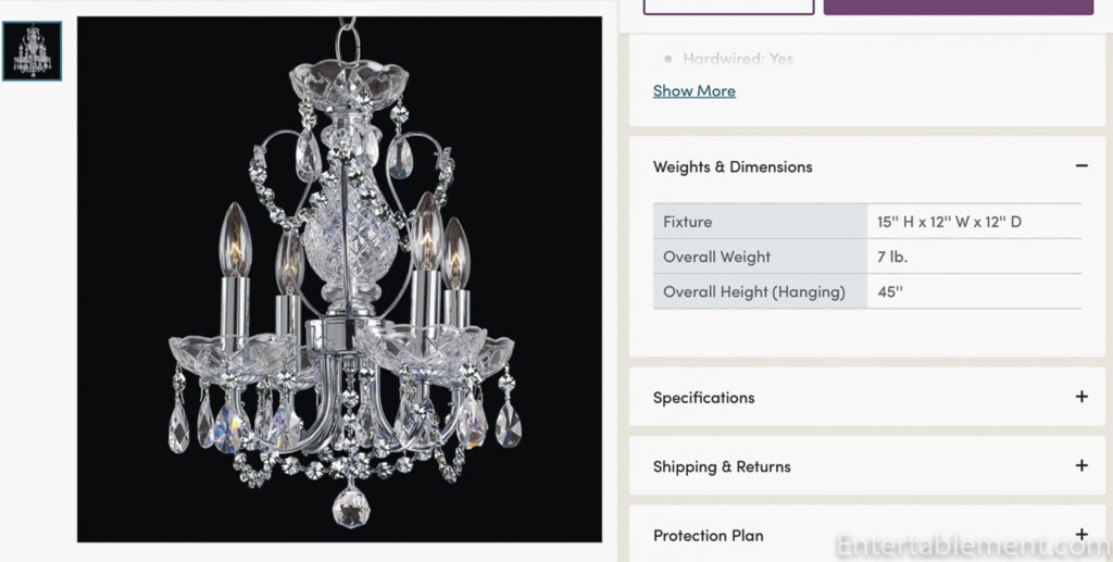 A small chandelier to go over the tub.
