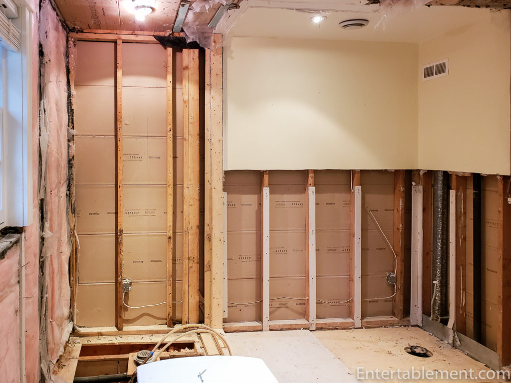 The teardown is in progress. They’ve removed the old shower in the corner.