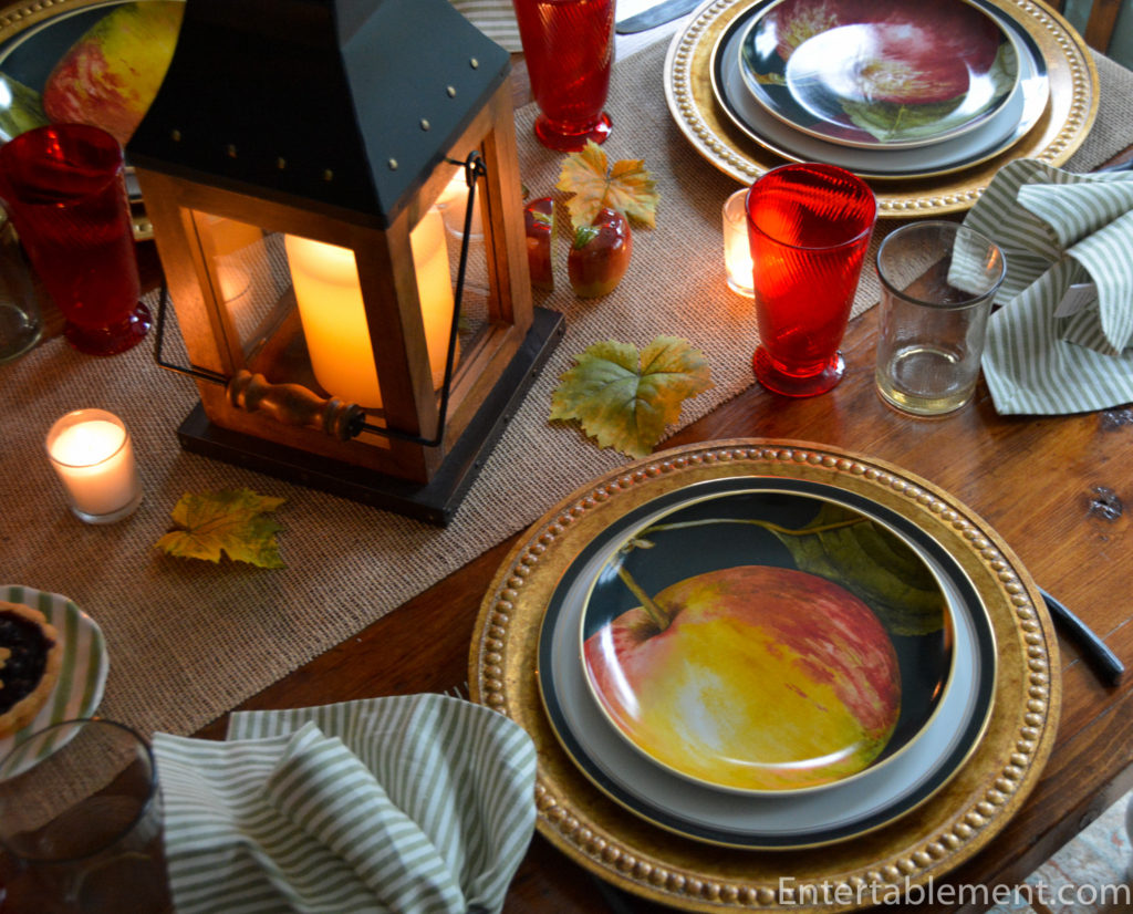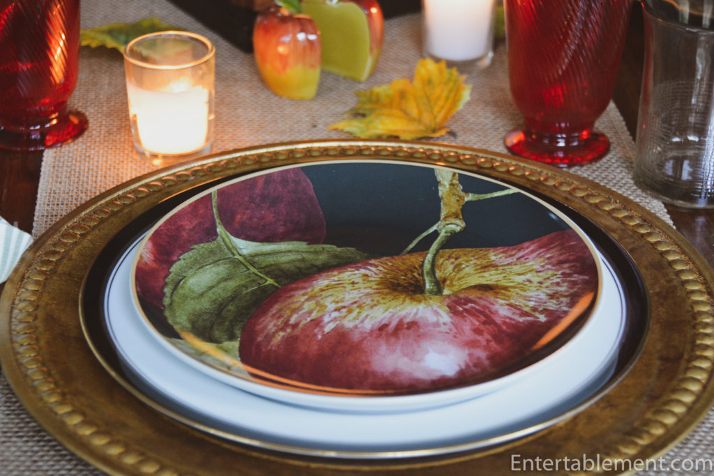 Apple plates help extend the season, too! With the black background and rich colours reminiscent of a Dutch Masters painting, this set of salad plates sets the mood for a warm, candlelit dinner.
