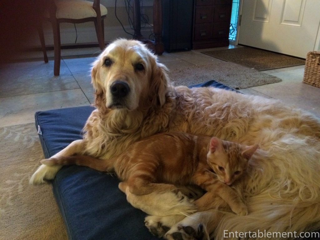 Dundee has entered the Diabolical Stage. He is fast becoming a household menace (though a very cute one). He flies from one end of the room to the other, climbing screens, caroming off furniture and chasing the other two cats mercilessly, batting them with his paws and tearing off before finally collapsing into deep sleep. He most often turns to Taylor, one of our Golden Oldies (she’s 12) for a naptime cuddle. She licks him, soothes his hurts and no doubt gives him wise counsel about tempering his mischievousness. We’ve noticed that he is particularly boisterous if his stomach is empty, so we are very attentive to keeping the food bowl full. There is never a dull moment with that scamp around! He looks deceptively innocent in that particular shot. Do not be deceived!