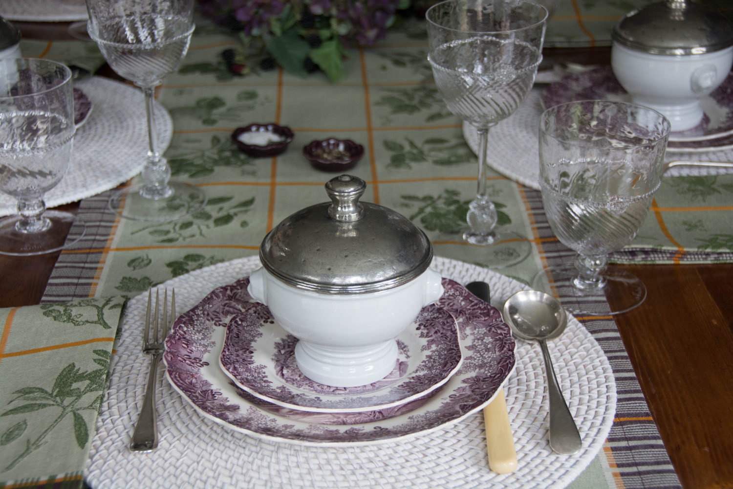 And purple transferware. Yum! But Romantic England has a toehold there.