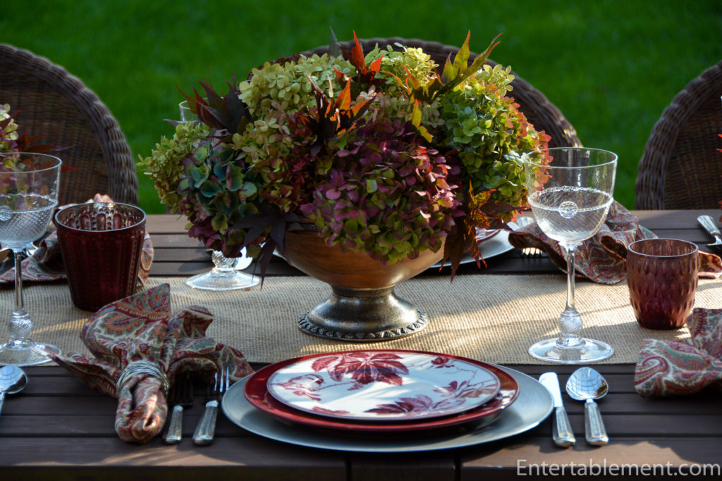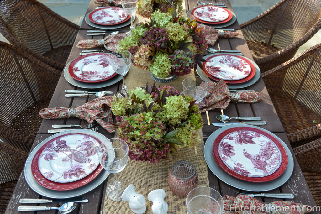Beautiful table! Love your choice of dishes, they are right up by alley. Your centerpieces are just fabulous! My hydrangea are gone now, we had snow and ice last night! Can’t wait to look around your blog since this is my first time to visit.