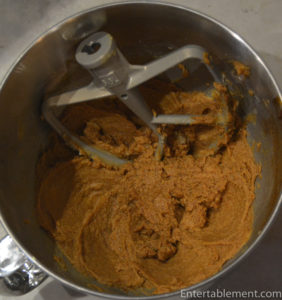 - In a separate bowl, combine the flour, baking soda, salt and spices. Add to the butter mixture in two portions, beating well and scraping down the bowl and paddle after each addition.
