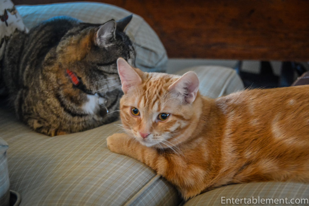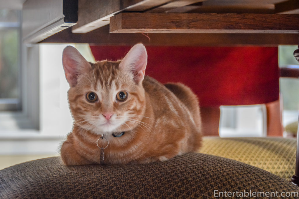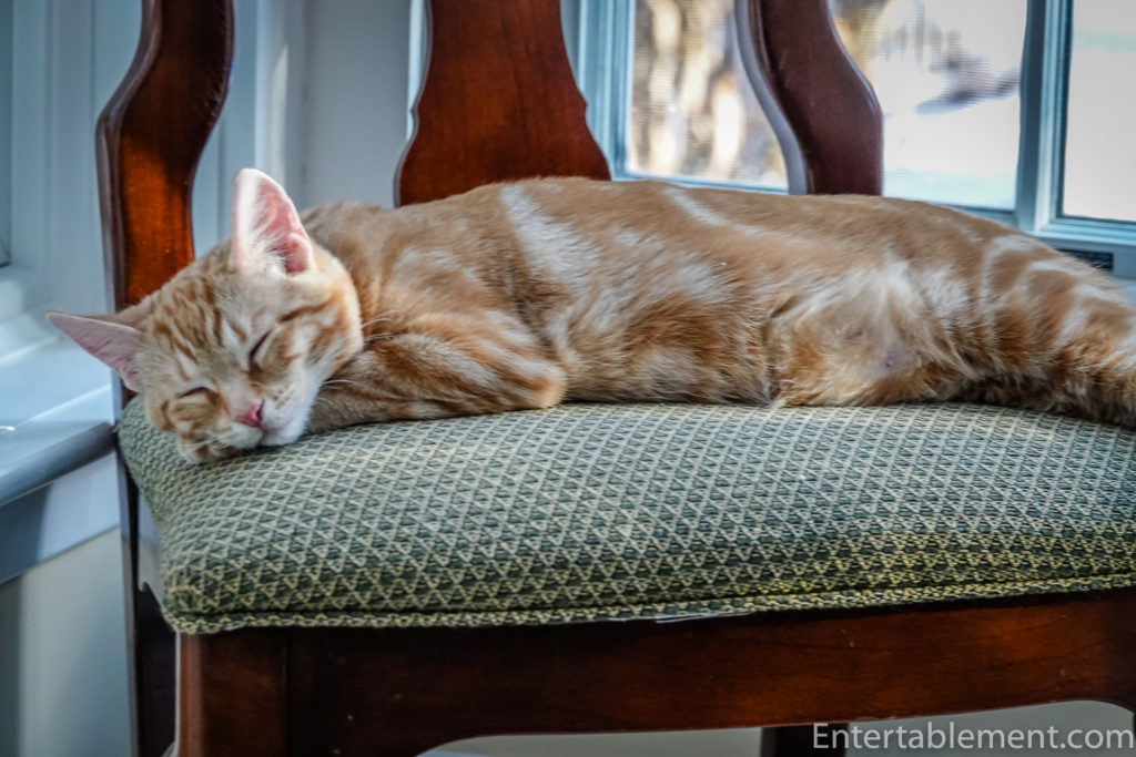That’s enough napping for me, too. All ready for another game of hide ‘n’ seek. Bet you can’t find me here, Clemmie!