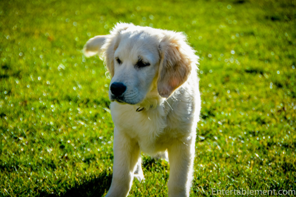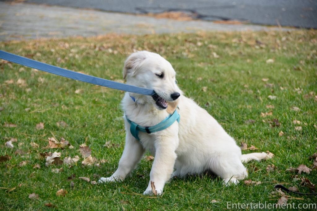 Her walking on a leash is coming along, but it very much feels like a cross between walking a windshield wiper and a kite in a high wind. The majority of the time she walks facing forward, but the sudden changes in tempo and direction will take some ironing out. Taylor had much the same habits when she was a pup, so much so that I ended up with a badly damaged rotator cuff in my left arm from all the yanking. I now walk her with her leash clipped around my waist. It’ll take some time for Clementine to get the idea.
