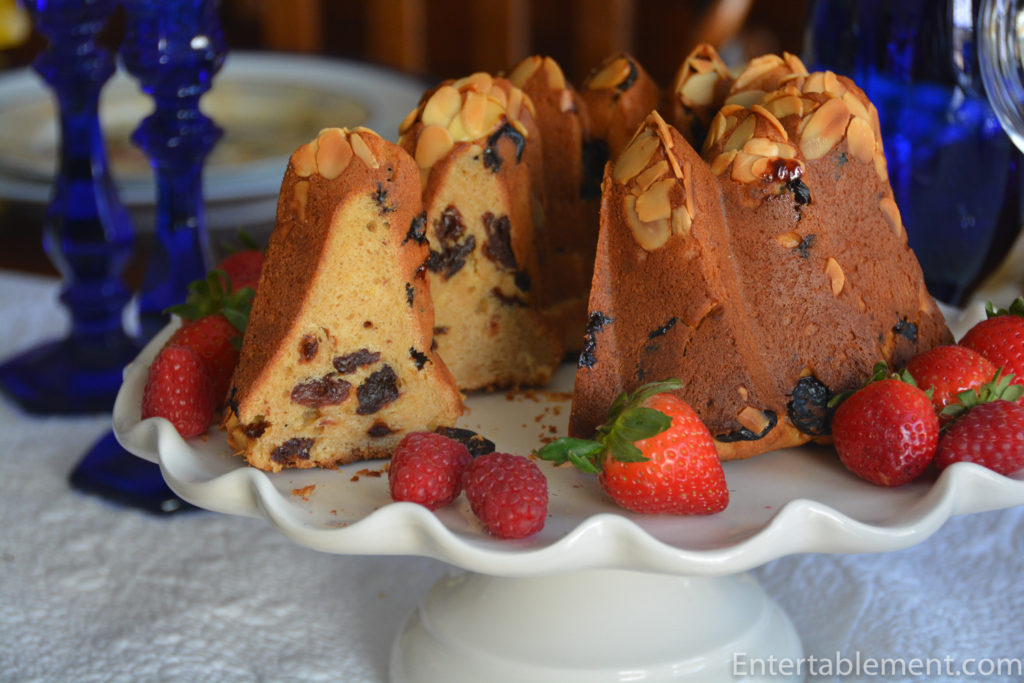 The cake had a lovely moist crumb and a delicately crispy crust. I used more dried cherries than it called for, as traditional Kugelopf has only one or two per slice (and I’m greedy). I used a bit too much lemon zest, I think, as it was a touch overpowering, but that was me not measuring accurately.