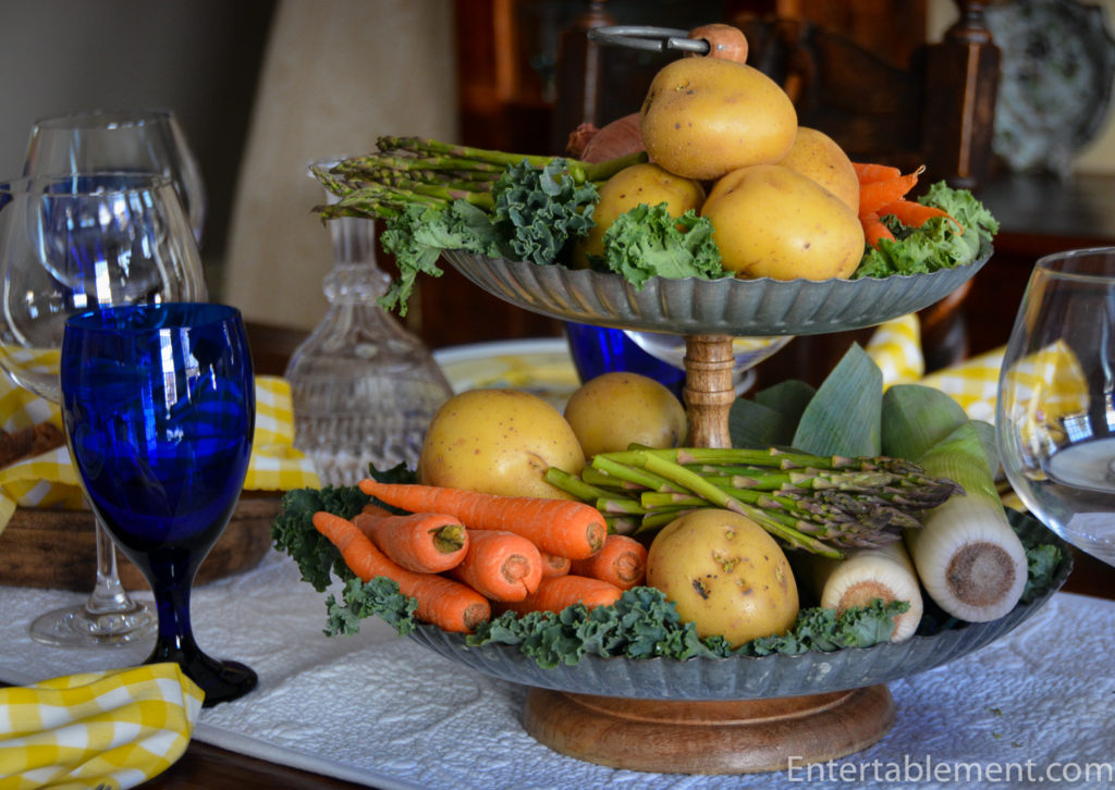 Bon Appetit features a towering platter of goodies, including a lobster – I didn’t feel up to wrestling with a lobster and stuck with vegetables.