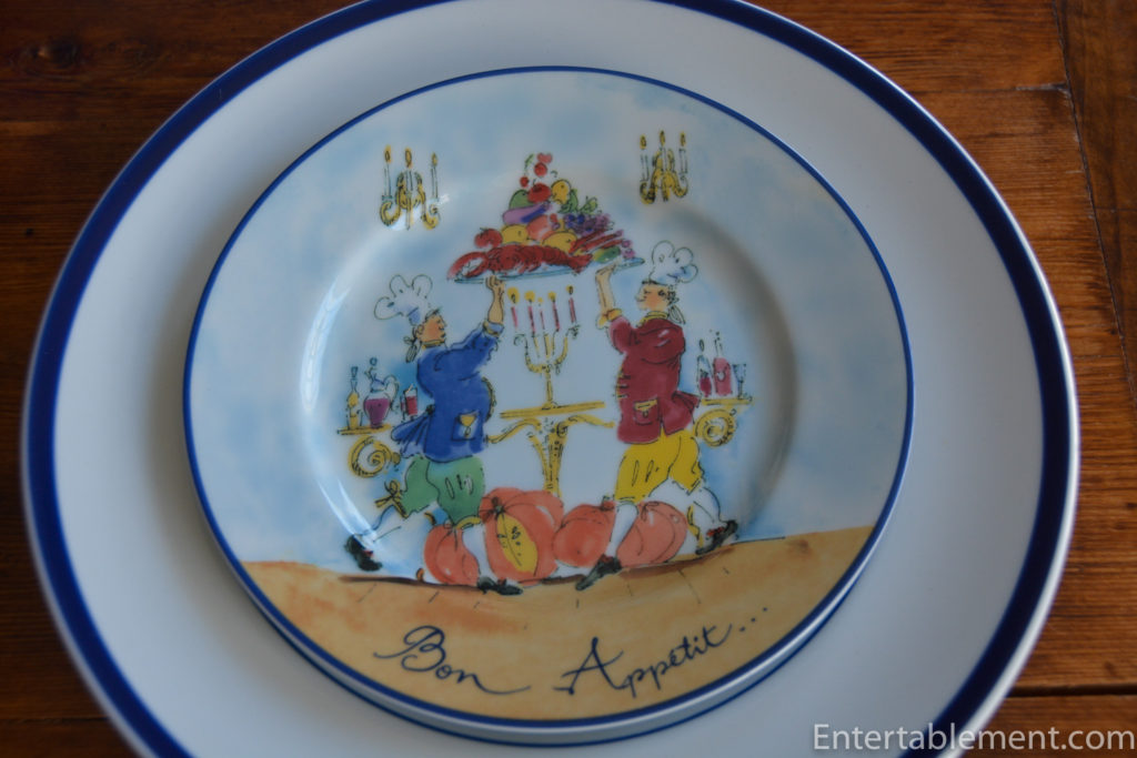The dinner plates are open kitchen Bistro by Williams Sonoma. The set of six French Chef salad plates are also by Williams Sonoma but long discontinued. These were an eBay find.