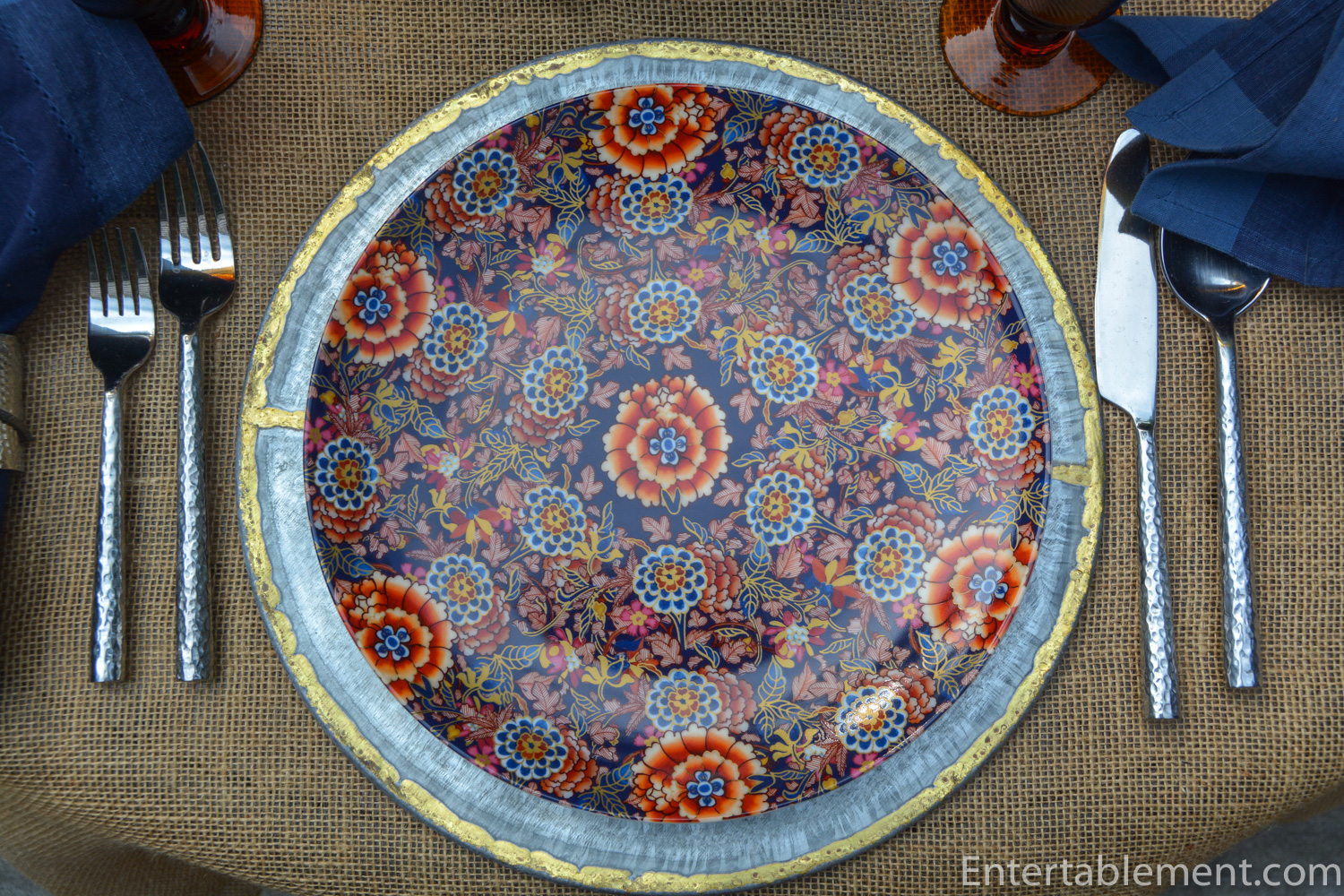 The chargers are from Target. I thought the gold edging added a layer of interest and a touch of glam for this upscale/downscale table – a modern version of a traditionally very ornate pattern.