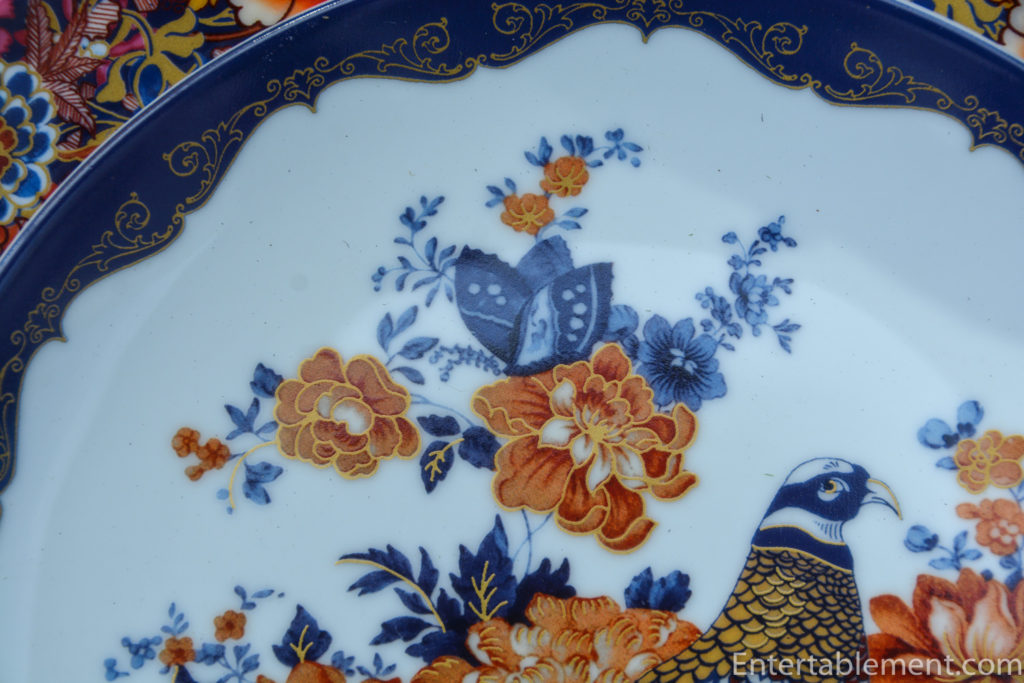 “The most frequent Imari palette revolved around three main colors—the blue underglaze, plus a rusty reddish-orange and a brilliant gold. The popularity of this trio led to countless imitations in the West, produced by potteries as respected as Meissen in Germany and Spode in England, both of whom copied Imari freely. By the early 18th century, China was flooding the export market with inexpensive Chinese Imari of its own, making Japanese Imari prohibitively costly in the West. The withdrawal of Japanese Imari from the Western market lured even more potteries into the Imari trade, particularly those in England, including Coalport. Foremost among them, and a strong player to this day, was Derby (now called Royal Crown Derby), which crammed its serving dishes, ginger jars, and teacups with as much pattern and decoration as their surfaces would permit.”