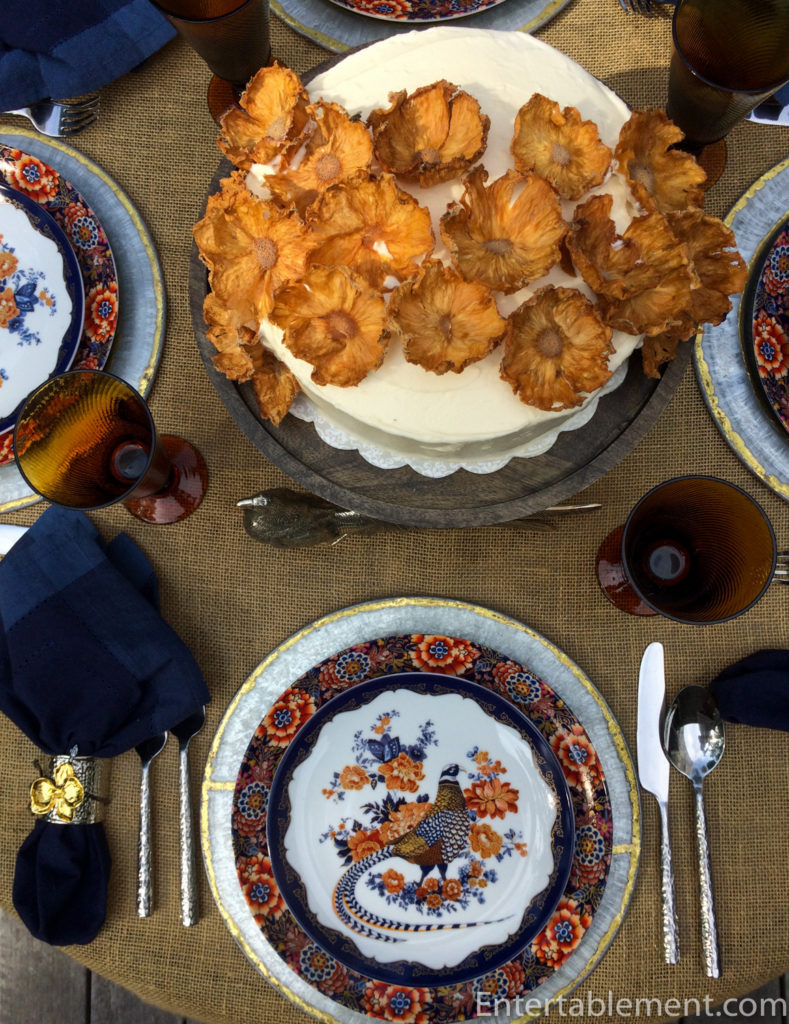 The pineapple flowers looked so much like the chrysanthemums and sunflowers on Fleur by Williams Sonoma that I was emboldened to create a cake adorned with the pineapple flowers as a centerpiece.