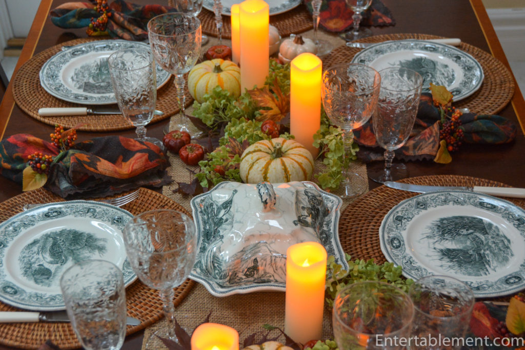 Such a lovely table, I adore any kind of transfer ware and this pattern really sets a perfect Autumn table. I refuse to look at any Christmas anything as time flies fast enough without pushing things so forward. Have a lovely holiday with your beautiful table setting!