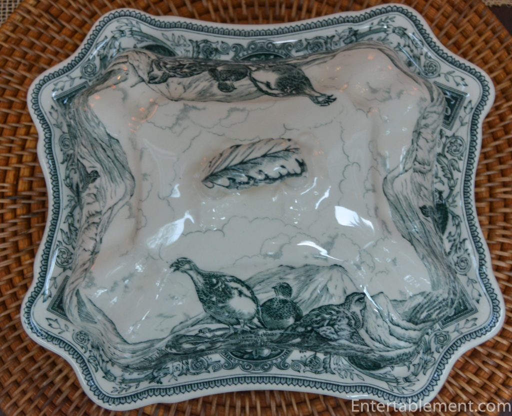 The piece de resistance in this set was the aforementioned covered vegetable bowl, and that’s what lead me to the pattern in the first place. I had come across the two fortuitous tureens for the Apple Blossom by Ridgway table and happened upon this one for Mason’s Game Birds. Oh, happy day!